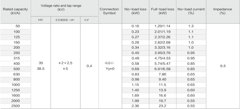 35kV 50kVA~2500kVA三相双绕组无励磁调压配电变压器