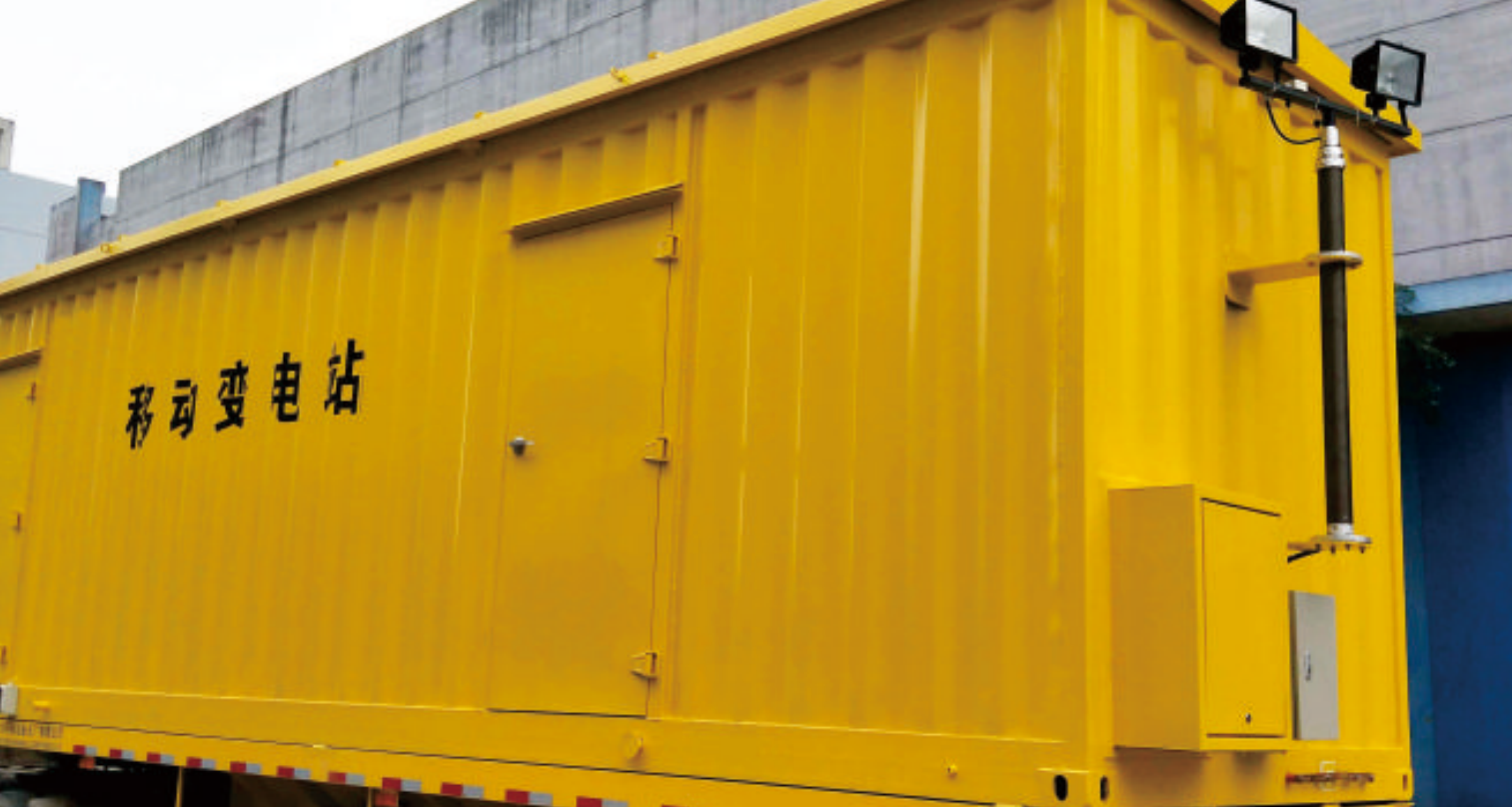 移动变电站由预制舱、二次设备柜(或机架)、高压开关柜、舱辅助设施等组成。该变电站的生产、组装、布线、调试等工